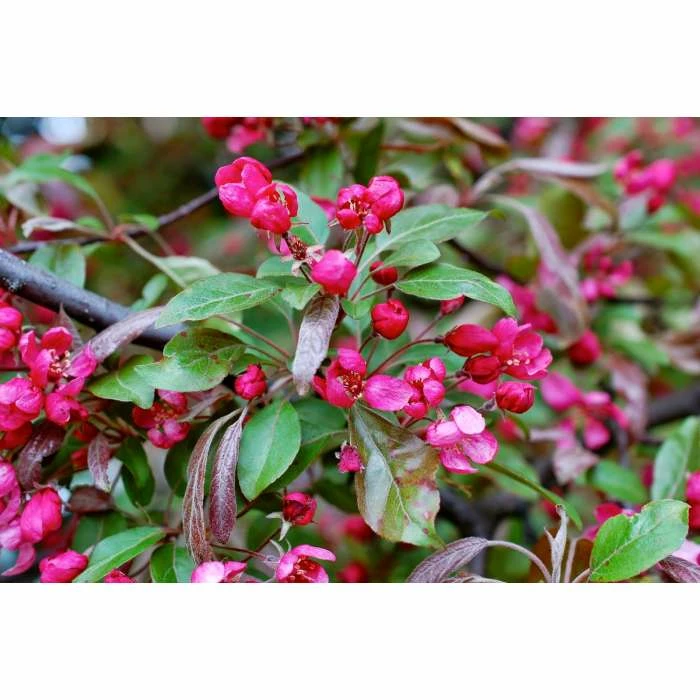 The Malus x moerlandsii ‘Profusion’ is an upright, spreading crab apple tree. This beautiful plant flowers profusely with young purple leaves, later turning to bronze and green in the summer. Reddish-purple crab apples follow in autumn which make for a lovely sight and a delicious snack for any hungry wildlife during those cold winter months. Pollution tolerant, the Profusion crab apple is sure to add a burst of colour to your garden and a delight to your taste buds.